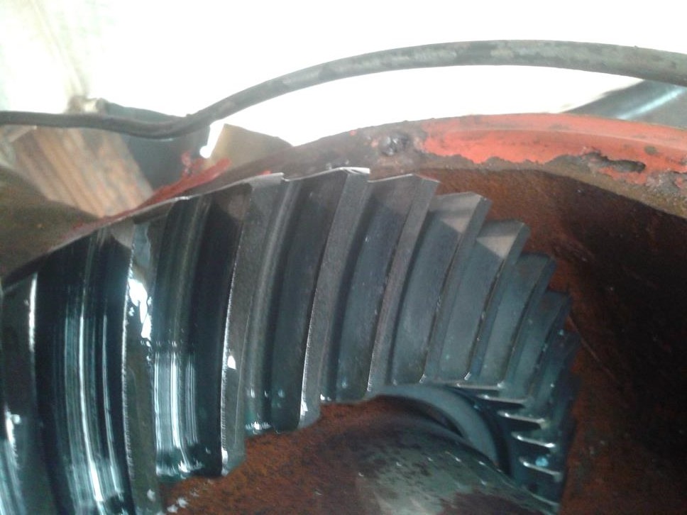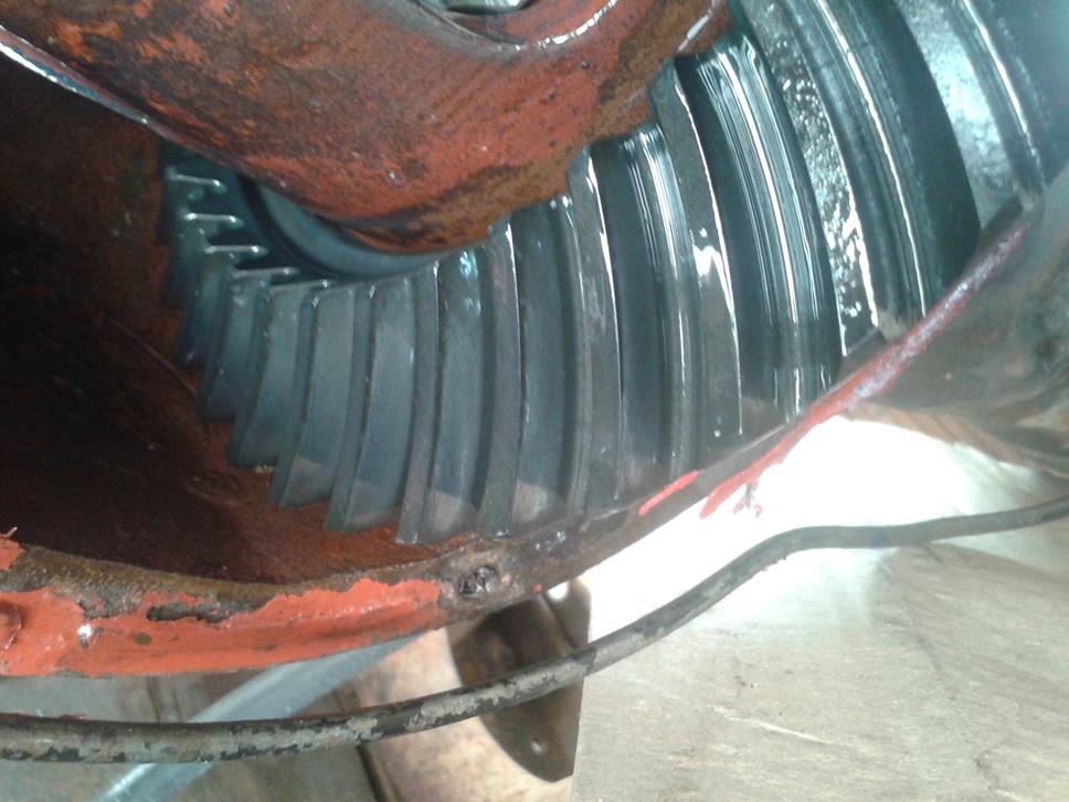 ontem rodei uns 10 km e hoje fui dar uma olhada,percebi que a porca tinha dado uma folgada.acho que o pinhao foi que acomodou.hoje tirei a tampa,desci o oleo novamente pra ver as marcas nos dentes;reapertei o pinhao puz loctite e puncelei a porca;as marcas estavam, assim depois de rodar;acho que ficou muito bom;
