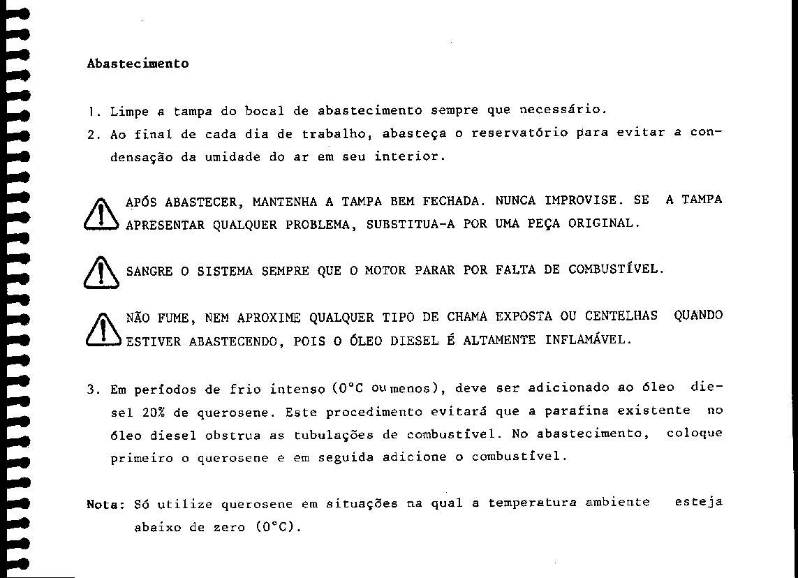 O manual recomenda o uso de querosene para dias muito frios, quando o diesel fica muito espesso (parafina).
