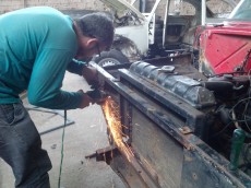 | Eu estava soltando uma solda que fizeram pra prender o quadro do radiador. |