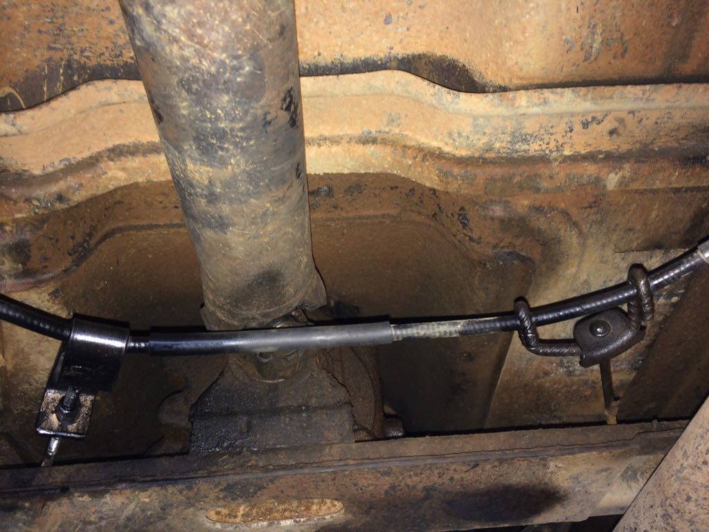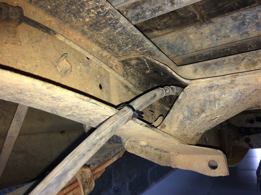 freio de mao adaptado funcionando;usei os dois cabos originais da s10 saindo das rodas,confeccionei dois suportes para passagem dos cabos e ancoragem das capas ,usei um cabo traseiro de roda,pra fazer a ligação entre os dois da s10;fiz um guia de de passagem do cabo naquele ferrolho fixo da carroceria e uma chapa de uns 10 com puxando o conjunto traseiro e fixando no cabo do manete da cabine.