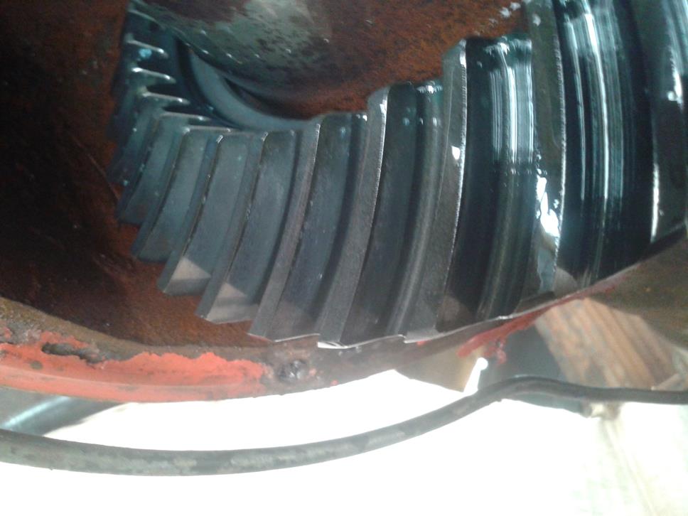ontem rodei uns 10 km e hoje fui dar uma olhada,percebi que a porca tinha dado uma folgada.acho que o pinhao foi que acomodou.hoje tirei a tampa,desci o oleo novamente pra ver as marcas nos dentes;reapertei o pinhao puz loctite e puncelei a porca;as marcas estavam, assim depois de rodar;acho que ficou muito bom;