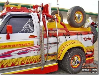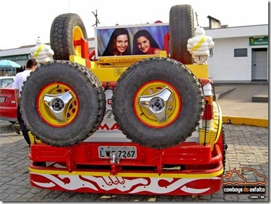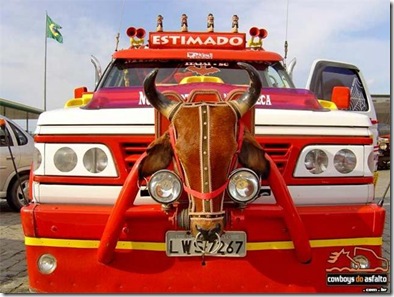 Fico imaginando um cara com um carrinho 1.nada tranquilo em uma estrada, curtindo um sonzinho e de repente olha no retrovisor interno e vê aquela cabeça de boi na sua trazeira. Deve ser um susto e tanto.