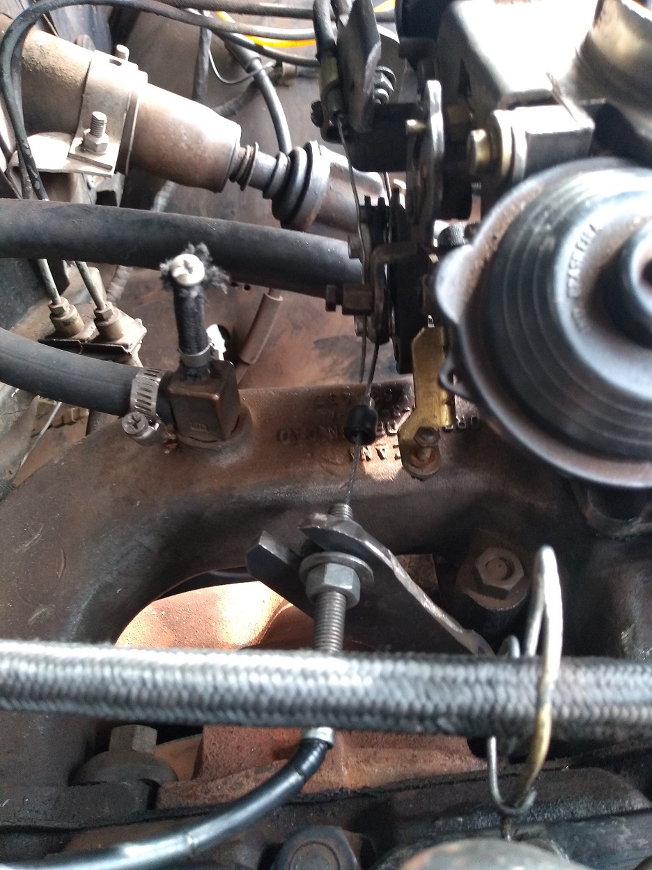 Ontem , segunda-feira 29/07/2019, tirei o filtro de ar do carburador 3E e a tampa de válvulas para regular válvulas, ( tucho mecânicos) só medi a folga de 02 válvulas, deu 0,35 no calibre, calibrei com 0,15 admissão e 0,20 as de escape.Remontei tudo, fiquei horas no cabo do kick down e descobri algo SURPREENDENTE, a porra do cabo do Kick estava bloqueando a abertura completa do 2° estágio. O porcanico aparafusou um guia de cabo ao lado do guia original do cabo do acelerador , aquele que prende o cabo no carburador e tem uma mola grande.Nas fotos a seguir será possível identificar o sistema , eu dobrei a haste do cabo do kick down para desviar o mecanismo de abertura do estagio do carburador , antes estava alinhado com o cabo do acelerador . O 2° estagio do 3E simplesmente ou não abria completamente ou não estava acionando.