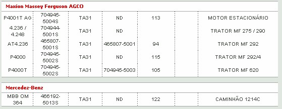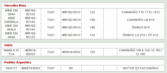 O turbo TA 31 é utilizado em vários motores, e cada um tem a montagem e caracteristica diferente.